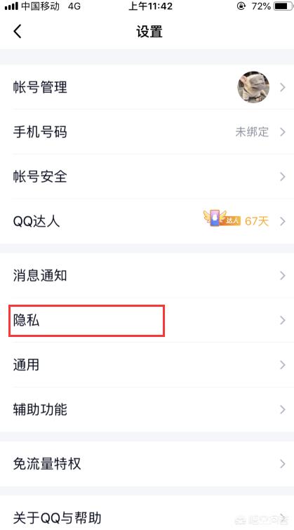 2、点击屏幕左上角“头像”图标,在弹出的菜单中点击“设置”选项,然后点击“隐私”选项。