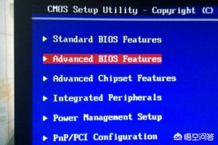 2、然后在弹出来的窗口中点击打开“advanced bios features”。