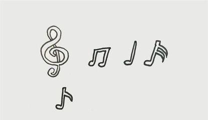 首先我们来画音符圆圆的符头,画出两个向下的八分音符,注意画出音符立体的感觉,在上方再画一个向上的八分音符。