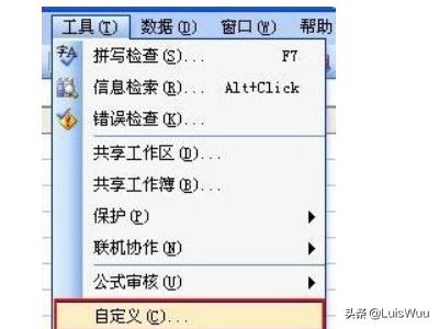 2、在我们打开表格之后,然后我们点击菜单栏中的“工具”,然后选择该选项中的“自定义”,如图所示: