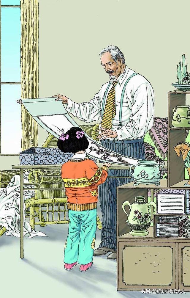 《梅花魂》,写的是一位老华侨十分珍爱墨梅图,在回国之际把墨梅图和绣着血色梅花的手绢郑重地交给外孙女,让她好好保存的往事。