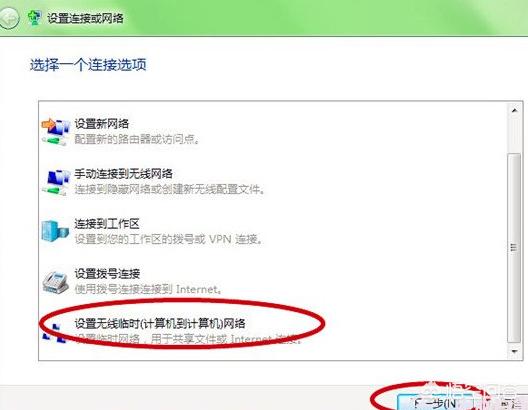 3、在界面中,滑动条拉到最底部,选择“设置无线临时网络”,再点击“下一步”,如下图。
