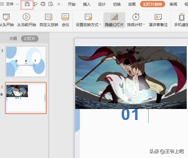 7、点击左上角的保存按钮或按Ctrl+s进行保存即可。幻灯片的制作讲究熟能生巧,所以多多练习,就会可以掌握这门技巧了。