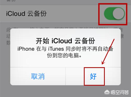 4、在备份界面,找到“icould云备份”选项,点击打开,在新弹出的窗口中选择“好”选项。