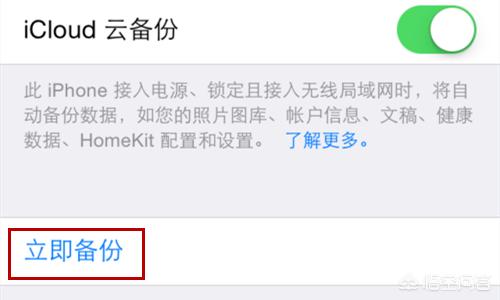 5、找到“立即备份”选项,点击打开即可运行icould云备份功能。在另新的苹果手机重复同样的操作步骤,即可完成数据转移到新苹果手机。