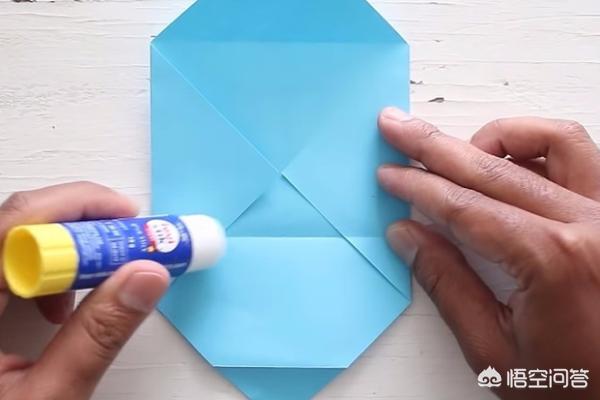 4、使用胶水涂抹信封下方,将下方的所有部位都粘结在一起,这样就可以形成三面封闭的信封口袋。