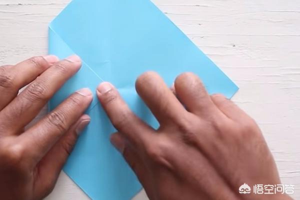 2、然后将纸张展开,将纸张两边的角折叠到中间位置,形成信封的两边,然后将下面的角向上折叠。