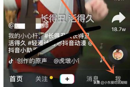 1、打开手机桌面上的抖音,在抖音的首页中点击右下角的【我】选项。